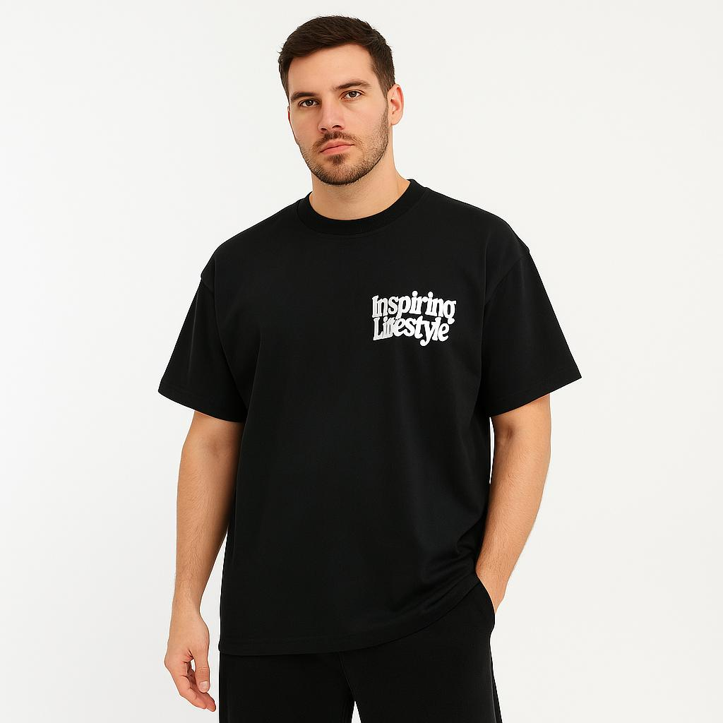 Premium Men’s Oversized Dropshoulder Pure Cotton Black Colour T-Shirt With Puff Print– Bio washed – 190 GSM